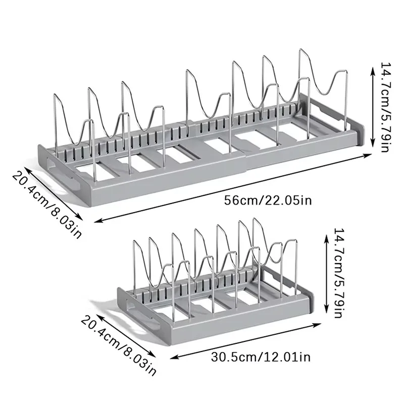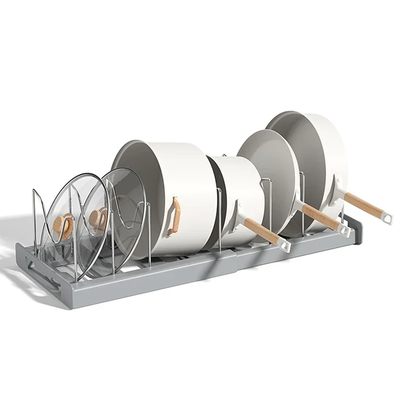 Expandable Pans Organizer Rack 7 Adjustable Compartments Dish Storage Rack Pot Lid Organizer Pots Holder Kitchen Utensils Rack